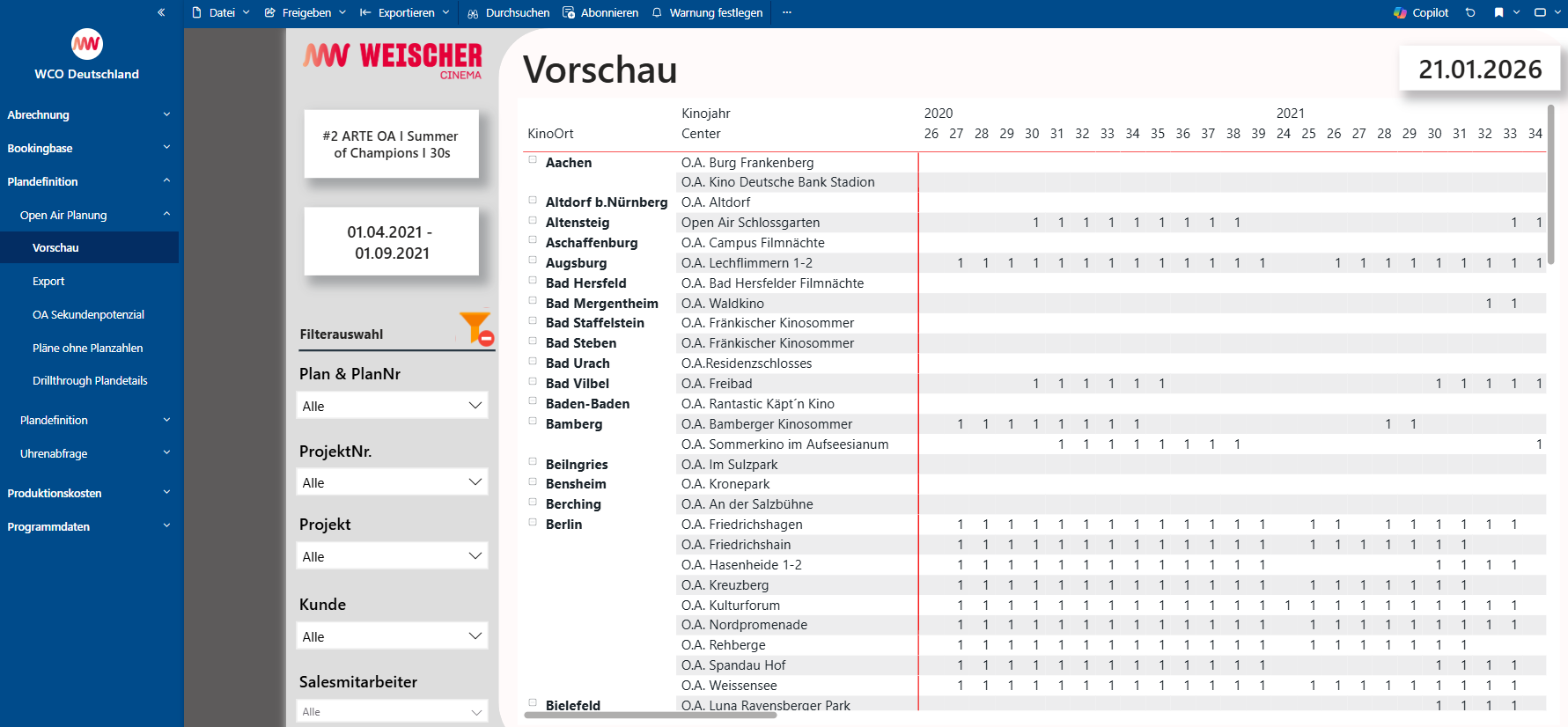 Ab 2025 haben wir die Funktion uns die Kreuzchenpläne für extern über PowerBI zu ziehen: WCD - Open Air Planung – Power BI